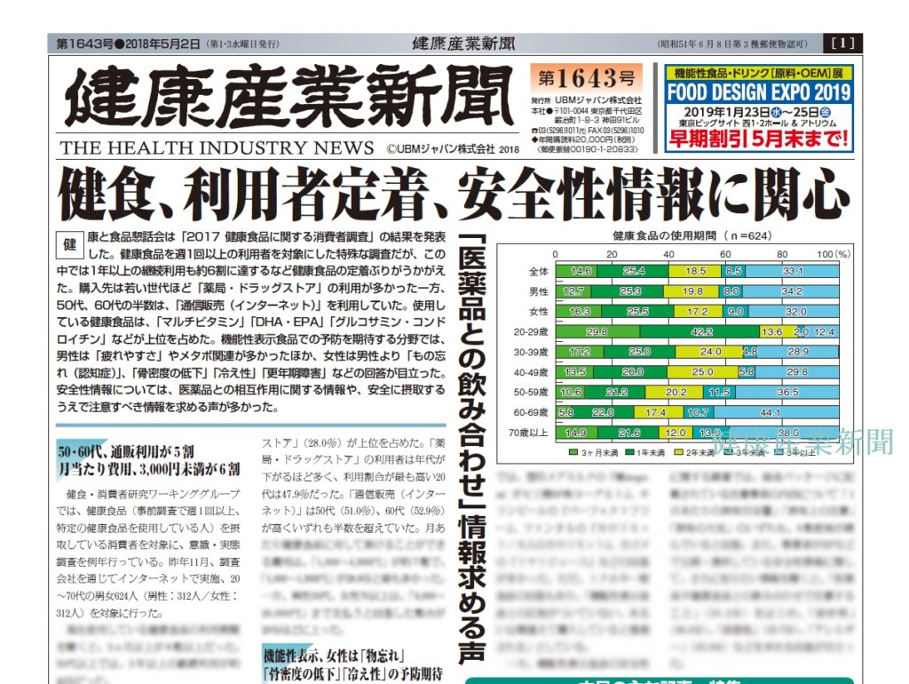 ウェブでは一部を公開。記事は「健康産業新聞 1640号」に掲載しています。「健康産業新聞」(月2回発行/1号あたりの平均紙面数は約50頁)定期購読のお申し込みはこちら