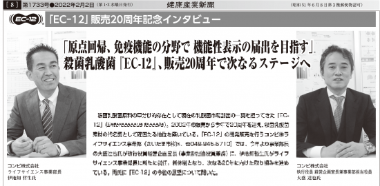 「EC-12」販売20周年記念インタビュー 「原点回帰、免疫機能の分野で 機能性表示の届出を目指す」