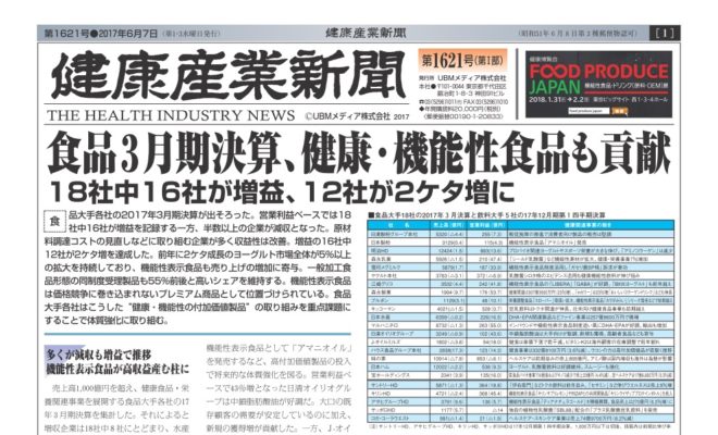 食品3月期決算、健康・機能性食品も貢献 18社中16社が増益、12社が2ケタ増に