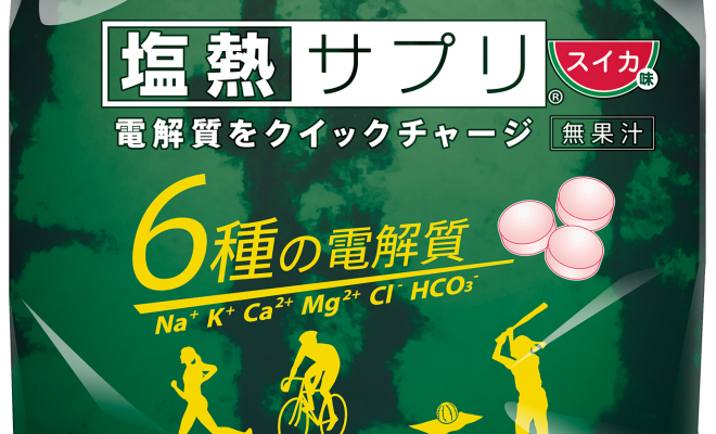 販売15周年を迎え、スイカカ味が新登場。ナトリウム、カルシウム、クエン酸、カリウム、ビタミンCを配合。水分補給とともに1 日6 粒までの摂取を推奨している。個包装になっているため、持ち運びも便利で、暑熱環境下でも溶けにくくなってい…
