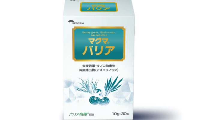 独自原料の大麦若葉・霊芝・シイタケ抽出物、海藻抽出物(アスコフィラン)を使用した液体タイプのサプリメント。黒マカ、朝鮮ニンジンなども配合した。味は黒糖とショウガのやさしい甘さ。液体を小分けのスティックパウチに入れて販売する。内容量…