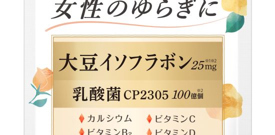 2粒当たりに大豆イソフラボン25mg、『乳酸菌CP2305』 100億個、カルシウムに各種ビタミンを…