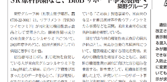 米由来セラミドで同社初の機能性表示食品 SR原料供給など、BtoB サポート事業展開へ