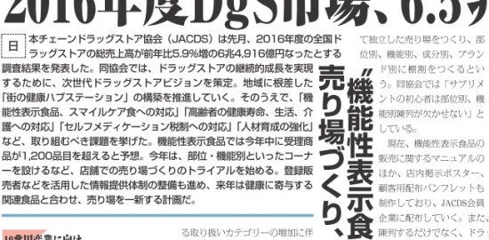 2016年度DgS市場、6.5兆円規模に ”機能性表示食品”売り場づくり 本格始動