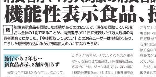 施行から 2 年も…新食品表示、8 割が知らず機能性表示食品を摂取した経験があるのは…