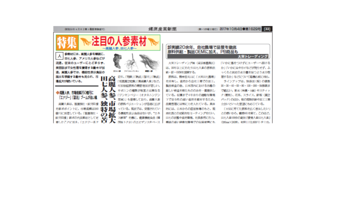 人参素材には、高麗人参を筆頭に、田七人参、アメリカ人参などが流通。従来のユーザーにとどまらず、美容訴求で女性層を獲得する動きが加速。高麗人参では、機能性表示食品の届出を準備する動きも見られ、市場拡大が続いている。&nbs…