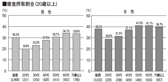 19年国民健康・栄養調査 健食利用率 男性30%、女性38%