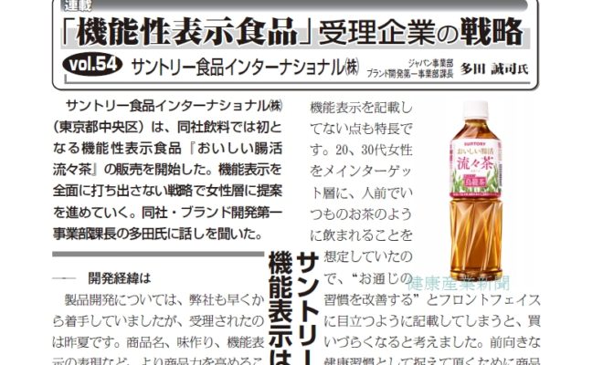 【連載/「機能性表示食品」受理企業の戦略】『おいしい腸活 流々茶』 サントリー食品インターナショナル(株)