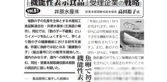 【連載/「機能性表示食品」受理企業の戦略】魚卵で初受理、『健康数の子』 機能性表示が〝不健康?イメージを払しょく
