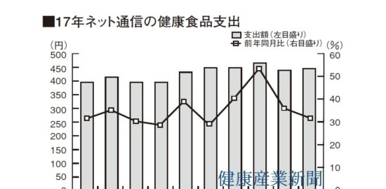 総務省統計局がまとめた2017年度の家計調査報告で、「総世帯」の健康食品支出額は、前年度比2.7%増とプラスになった。一人暮らし世帯がサプリメント支出を増やした。「総世帯」の17年度消費支出は、1世帯1ヵ月あたり24万5,388円で、前…