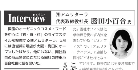 国産のオーガニックコスメ・フードを中心に「衣・食・住」のライフスタイルを提案する㈱アムリターラ。5月…