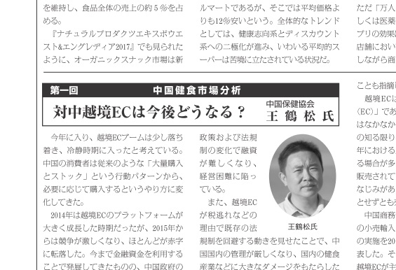 中国保健協会 王 鶴松 氏今年に入り、越境ECブームは少し落ち着き、冷静時期に入ったと考えている。中国の消費者は従来のような「大量購入とストック」という行動パターンから、必要に応じて購入するというやり方に変化してきた。 (さらに&h…