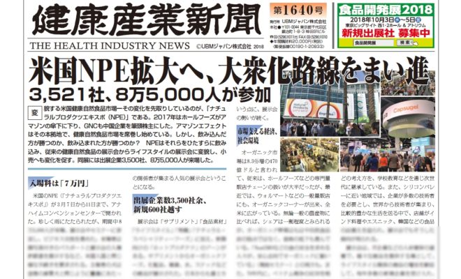 健康産業新聞(第1640号)3月21日発行号 米国NPE大衆化路線をまい進、<特集>アンチ・ドーピング ほか