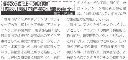 富士化学工業 「抗疲労」「美容」で新市場開拓、機能表示届出へ
