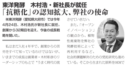 東洋発酵 木村浩・新社長が就任㈱東洋発酵(愛知県大府市)では今年4月24日、木村浩氏が新社長に就…