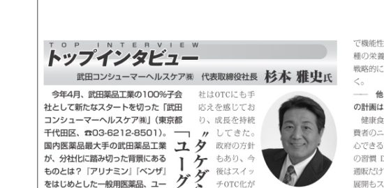 【トップインタビュー】”タケダらしい商品開発”で、売上1000億円を目指す