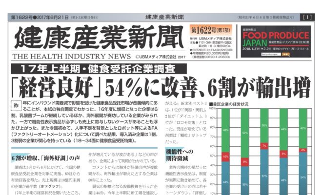 「経営良好」54%に改善、6割が輸出増 17年上半期・健食受託企業調査