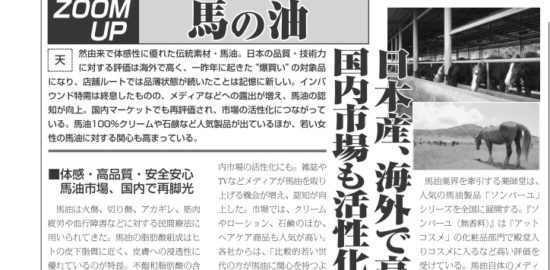 【ZOOM UP】馬の油 日本産、海外で高評価 国内市場も活性化