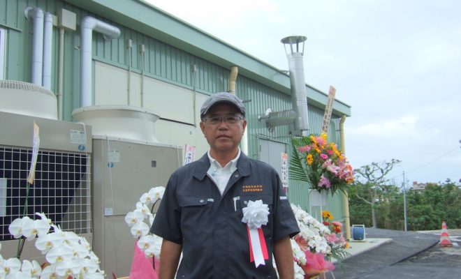㈱琉球エコプロジェクト代表取締役の安里和夫氏が理事長を務める沖縄県伝統作物生産事業協同組合(沖縄県国頭郡、0980-56-3990)の今帰仁工場落成式が11月15日に行われ、関係者約60人が参加した。新工場は約90坪の1 階建て。橋…