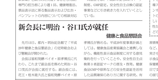 新会長に明治・谷口氏が就任 健康と食品懇話会