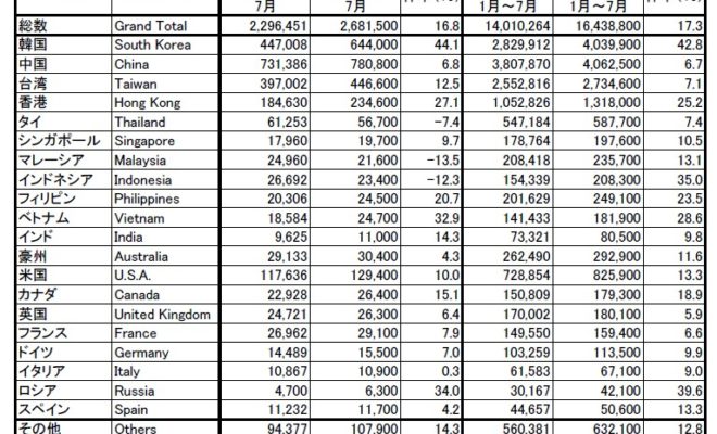 【ビューティー&ウェルネスジャパン】7月の訪日外客数268万2000人で過去最高に
