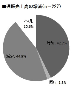 日本通信販売協会が1日に発行した会員対象の通販企業実態調査報告書で、2016年度の売上高は「増加」が43%となり、前年度実績を下回った企業が45%になったことがわかった。商品の平均単価は前年度より948円減少した。取扱商品ランキ…