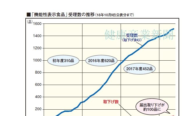 機能性表示食品が1,400品を突破、停滞していた受理の増加スピードが9月に入り再び加速しはじめた。今年度は、10月9日現在で約30社が新規に受理。「既存のSRデータは大方使い果たしたのでは」との指摘もある中で、「尿酸値」「血管」「活気」など…