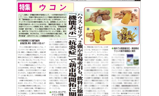 【特集】ウコン、「機能表示」「抗炎症」で新市場開拓に期待 -ハウス・ゼリア2強が市場牽引も飲料に飽和感-