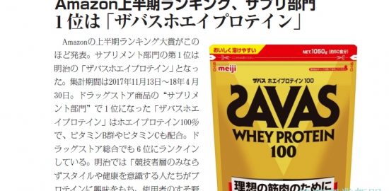 Amazon上半期ランキング、サプリ部門 1位は「ザバスホエイプロテイン」