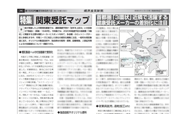 【特集】関東受託マップ -首都圏「3環状」近隣で活躍する健康受託メーカーの差別化に注目-
