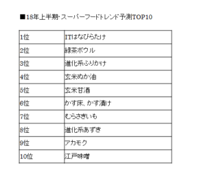 日本スーパーフード協会は2018年上半期のトレンドを予測した「ジャパニーズスーパーフードランキング TOP10」を発表、1位に「IT-はなびらたけ」を選出した。女性ホルモンを活性化する“サイレントエストロゲン”を多く含むハナビラタケの品種という。