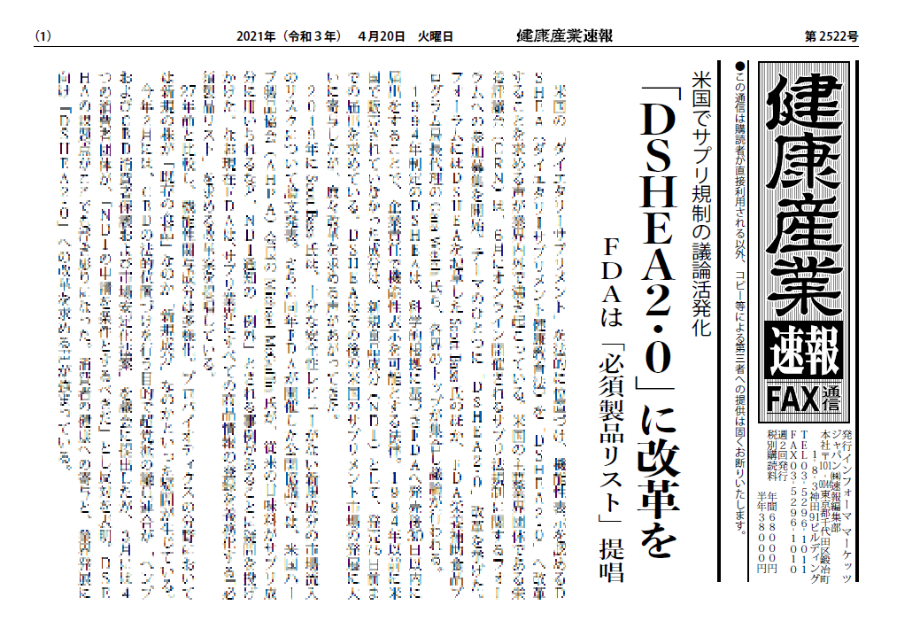 ・米国FDA 23年度予算要求 全サプリの登録案盛り込む