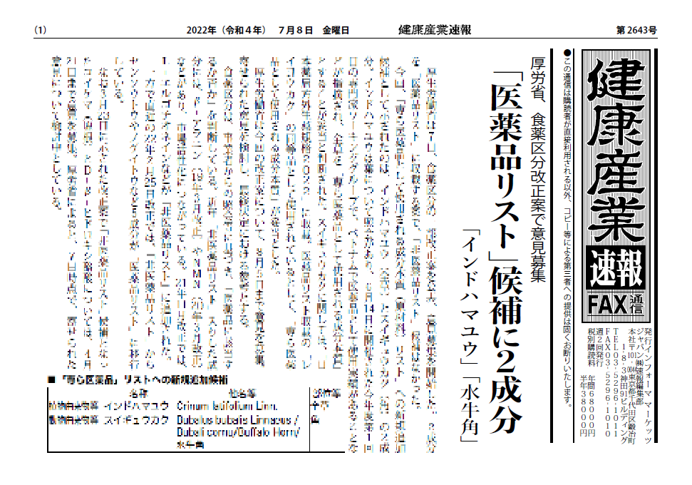 ガイドブックでは、各受託製造企業の概要や所在地、連絡先、取引銀行などの基礎データから、受託可能な剤型、各社の得意項目、設備の詳細、業績などを紹介します。健康食品受託製造企業118社、化粧品受託製造企業53社、受託試験・分析企業30社の情報を各1ページのスペースで収載。