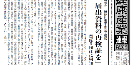 ・消費者庁 機能性表示食品で通知「届出資料の再検証を」関係5団体に周知を依頼・22年度化粧品…