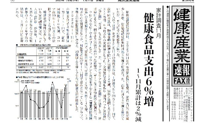 ・ステマ、景表法で規制へ・DgS11月、健食5%増 11ヵ月連続プラス・通販協調査、…
