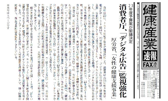 ・消費者庁、「デジタル広告」監視強化・都、新たな消費生活基本計画 デジタル広告監視強化・米FTC、24年ぶりにサプリ広告ガイド改訂・機能性表示食品5601品に・米国CRN、「必須製品リスト」めぐりNPAに反論…