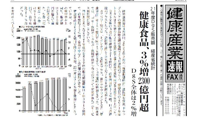 ・21年度DgS販売額 経産省統計 健康食品、3%増2300億円超・機能性表示4864品に γオリザノールなど受理・都の消費生活相談、健康食品16ヵ月連続減少・子どもの数1465万人、41年連続減少・英国、「…
