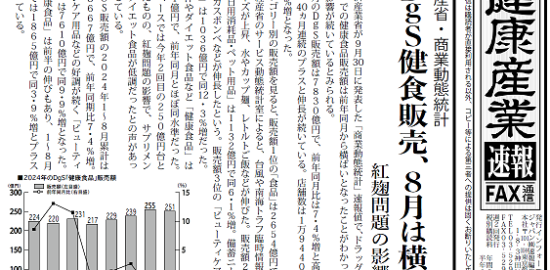 ・経産省・商業動態統計 Dgs健食半ビア、8月は横ばい 紅麹問題の影響続く・D&B展が開幕、…