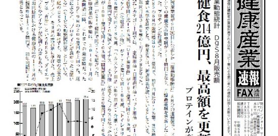 ・商業動態統計 DgS8月販売額 健食214億円、最高額を更新・機能性表示食品、一挙50品受…