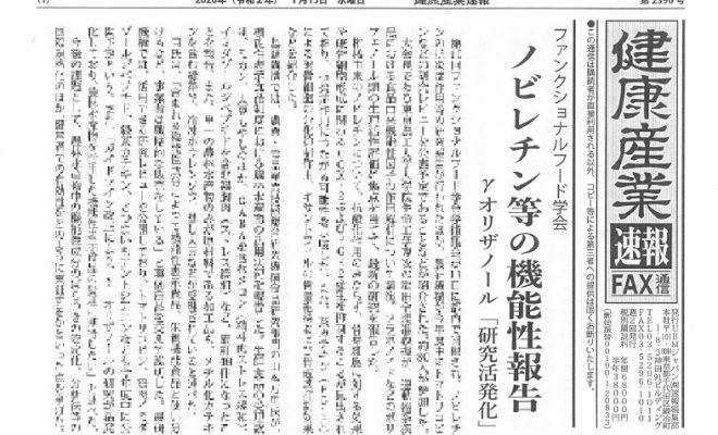 ・ファンクショナルフード学会 ノビレチン等の機能性報告・低栄養傾向の高齢者、男性10%・女性20%・通販協賀詞交歓会、約500人が参加・家計調査11月、健食支出3%増・11月の健食ネット通販、4ヵ月ぶりのプラ…