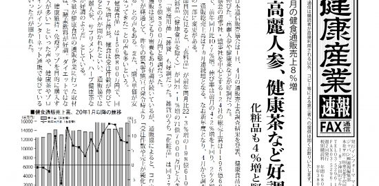 ・4月の健食通販売上8%増 高麗人参、健康茶など好調・「まつ毛伸びる」等の表示で措置命令…
