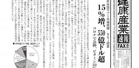 ・20年米国サプリ市場規模 NBJ調査 15%増、550億ドル超・農林水産研究で戦略、「令和…