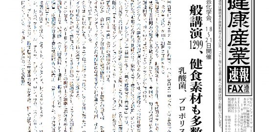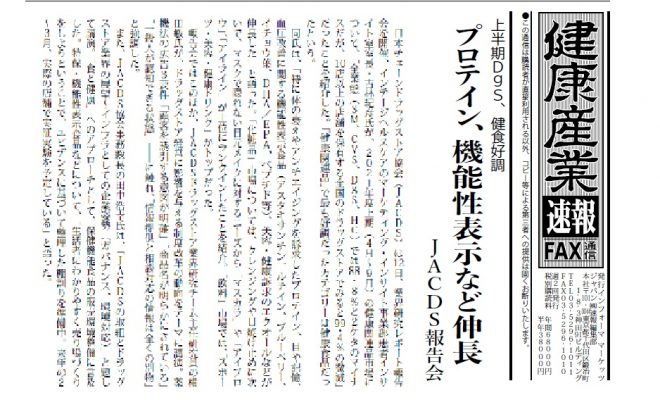 ・上半期DgS、健食好調 プロテイン、機能性表示など伸長・サプリ国際団体IADSA、SDGsで指導原則・農水省、アグリビジネスフェア 食品機能性でセミナーも・プラセンタ市場、4・5%増の230億円に・理研、難…
