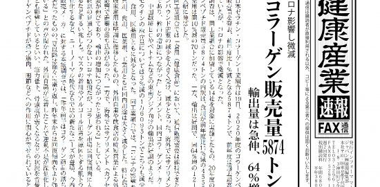 ・コロナ影響し微減 コラーゲン販売量5874トン・米国、「医療保険制度でサプリ購入」法案が議…