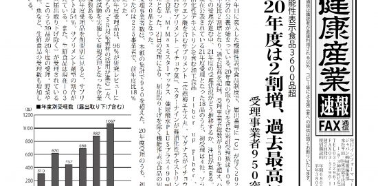 ・機能性表示食品3600品超 20年度は2割増、過去最高に・21年通販・EC市場、10%増1…