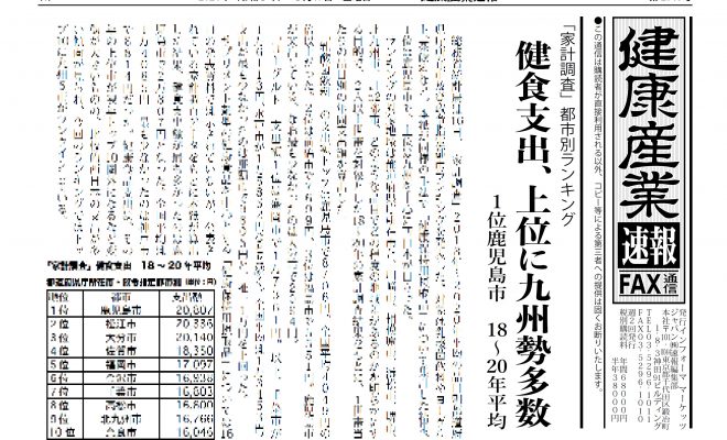 ・「家計調査」都市別ランキング 1位鹿児島市・米FDA、食品トレーサビリティ法案 ハーブも対象・国際農研など、「キヌア」の遺伝子制御技術・ドイツ研究、ビーガン食が骨に影響 リジン等低濃度に・中国ECプラットフ…