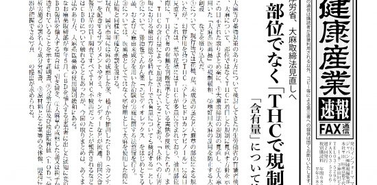 ・厚労省、大麻取締法見直しへ 部位でなく「THCで規制」・栄養機能食品の販売企業に表示是正指…
