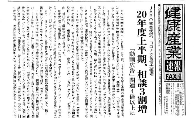 ・JARO審査状況、コロナで苦情大幅増 20年度上半期、相談3割増・厚労省、「指定成分」情報対応でワーキンググループ・カシス、食後血糖値に効果 フィンランド研究・機能性表示、6品取り下げで計3123品に・米国…