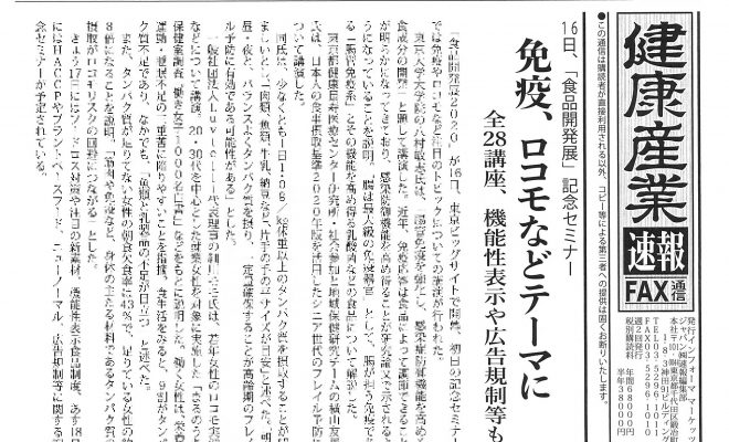 ・免疫、ロコモなどテーマに 全28講座、機能性表示や広告規制等も・リトコス、佐賀県離島でオーガニックアイランド事業・インデナ、ケルセチンに抗アレルギー作用 免疫表示も視野・テルヴィス、クィーンガーネットプラムを上市…